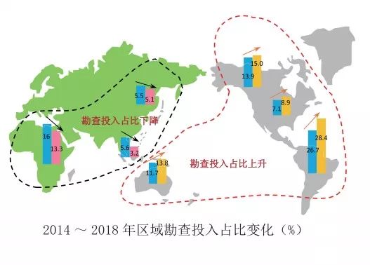 ● 国际大型矿业公司勘查回归澳大利亚和南北美洲。大型矿业公司逐步聚焦南北美、澳大利亚等地区,大幅降低非洲、东南亚等地区勘查投入。