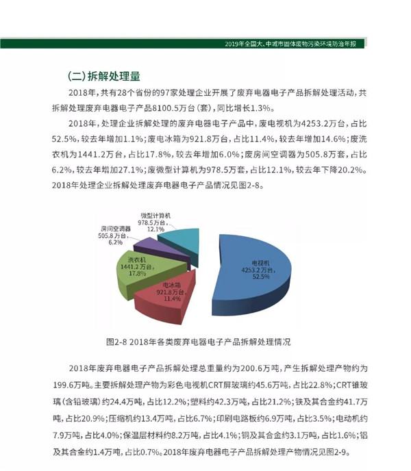 2018年,200个大、中城市生活垃圾产生量21147.3万吨,处置量21028.9万吨,处置率达99.4%。
