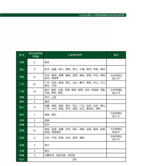 2018年,200个大、中城市医疗废物产生量81.7万吨,处置量81.6万吨,大部分城市的医疗废物都得到了及时妥善处置。
